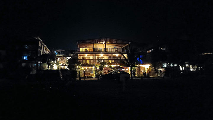 Foto nocturna de hotel en Ayample, Ecuador